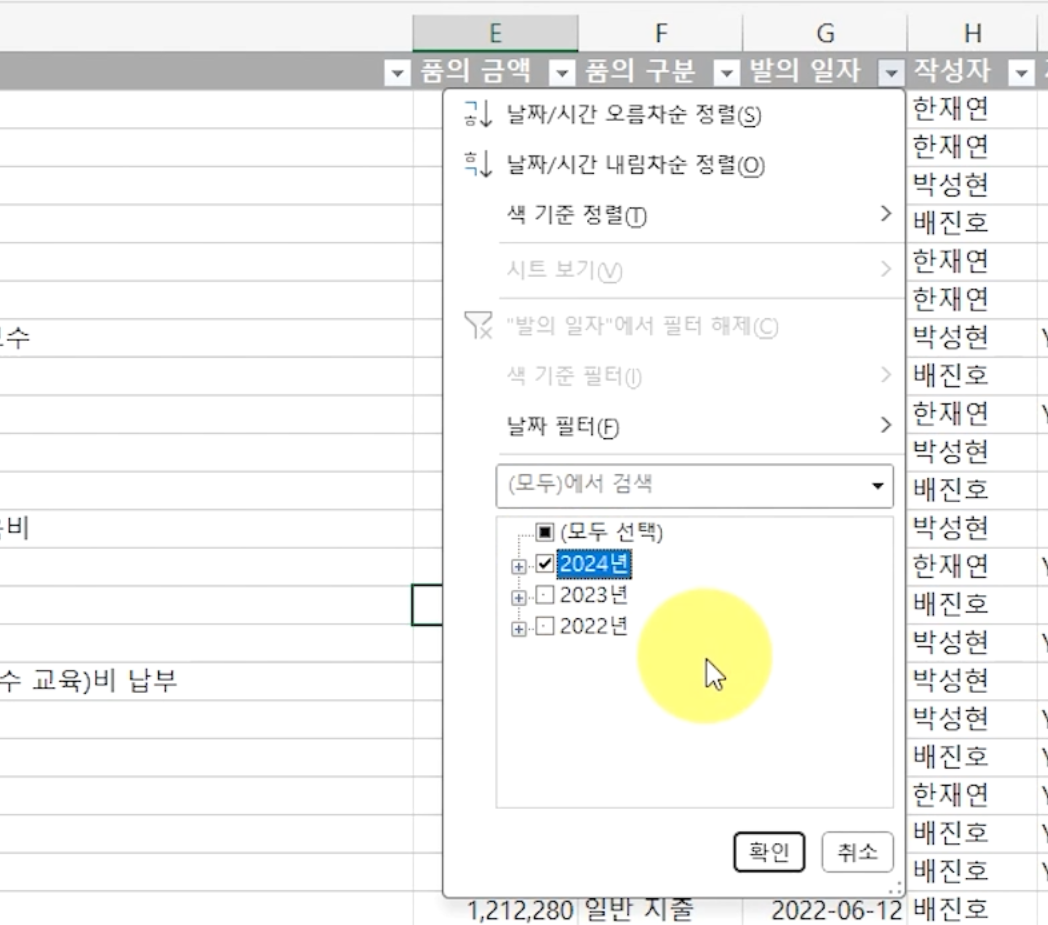 이번에는 발의 연도가 2024년에 해당하는 비용을 필터링 해보겠습니다.