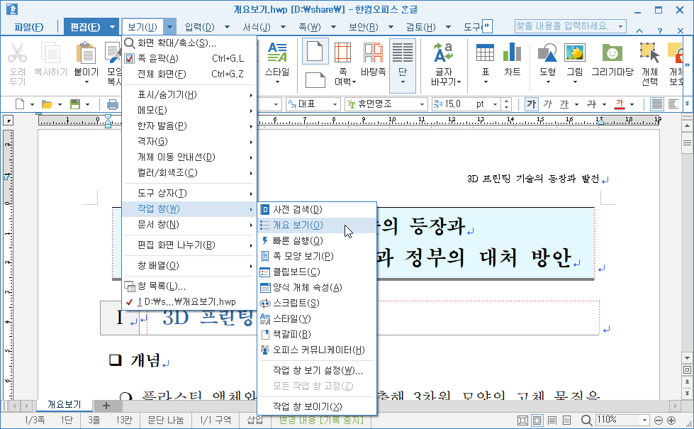 개요 보기로 문서 구조 파악하기 #한글문서작성실무