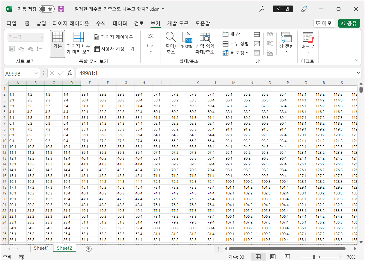 Sheet2 시트에 결과가 표시됩니다.