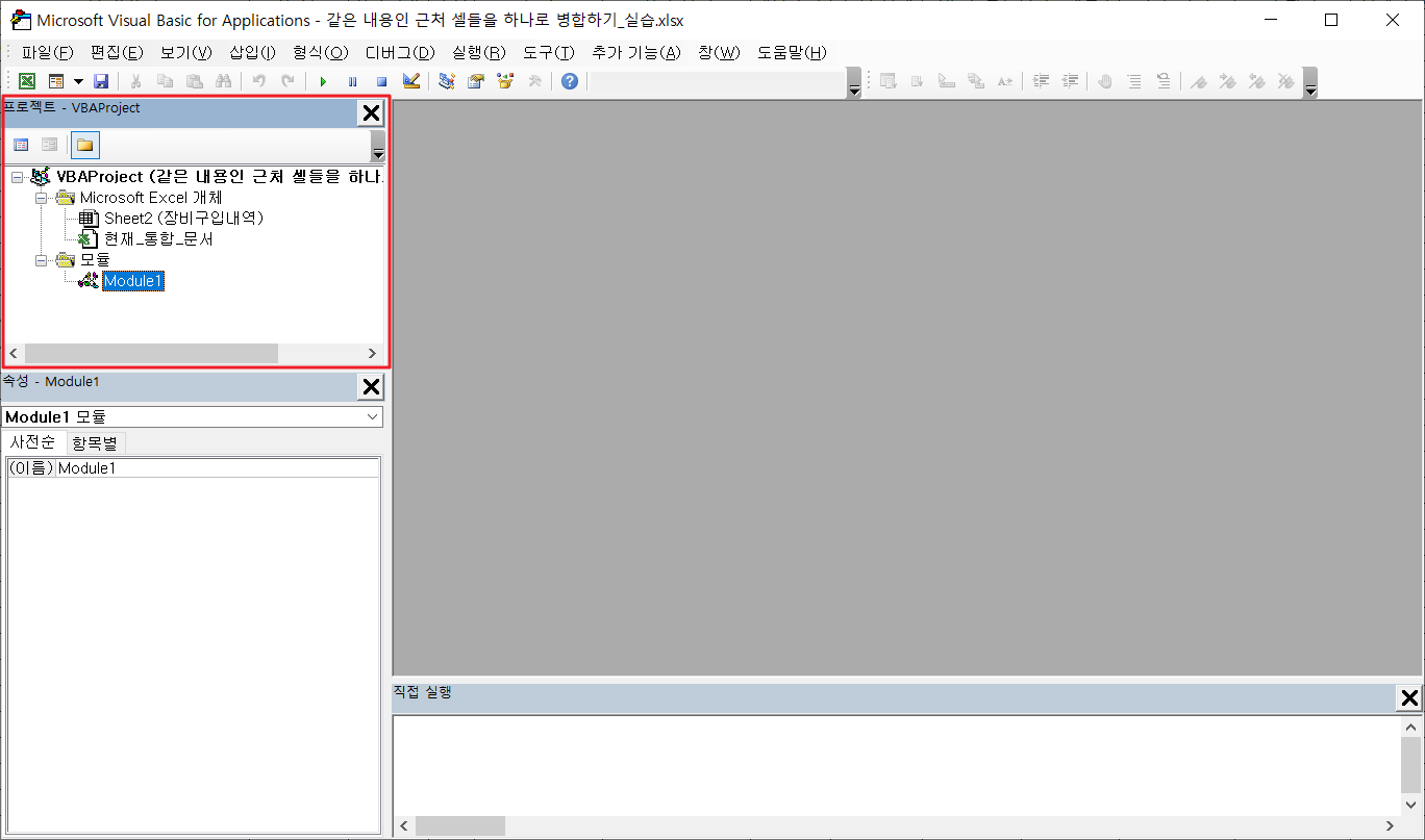 왼쪽 [프로젝트 탐색기]에 모듈이 표시됩니다.