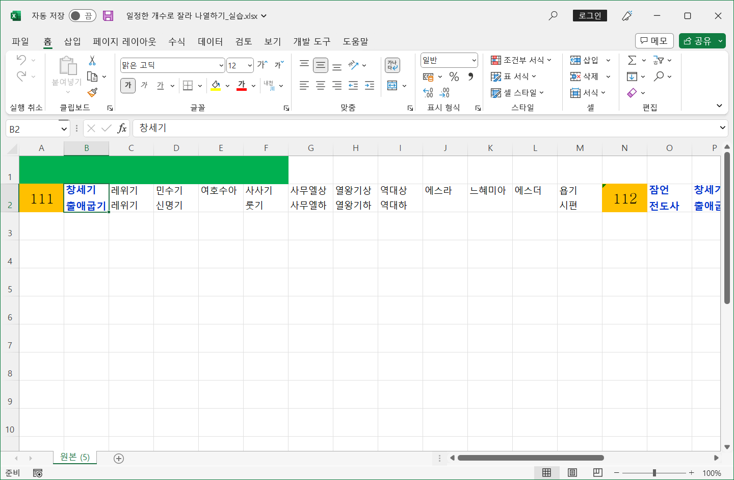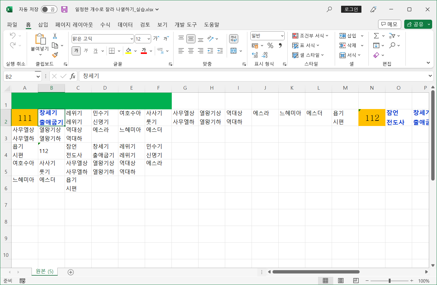 한 행이나 한 열에 나열된 데이터를 일정한 개수로 잘라 나열하기