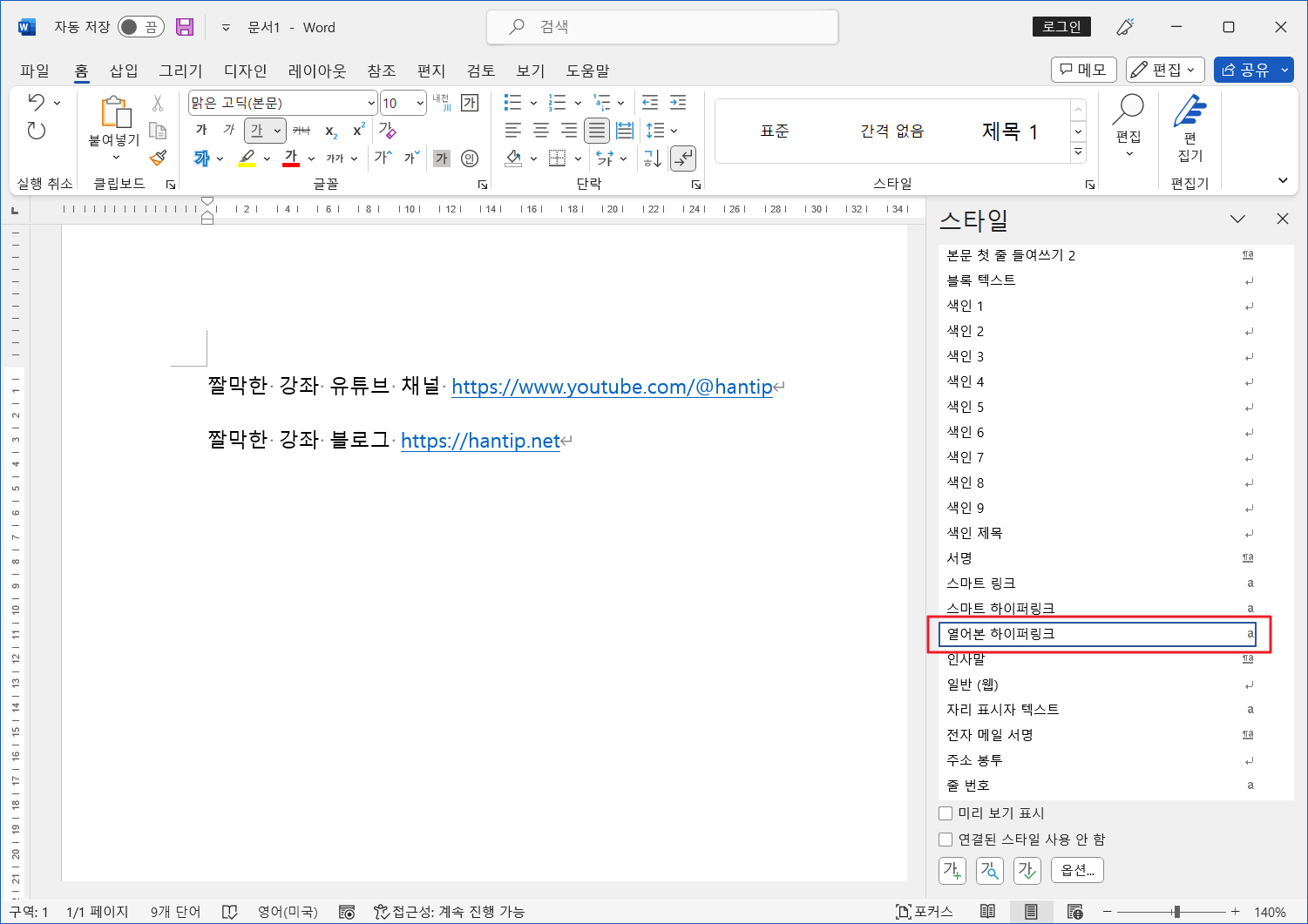 열어본 하이퍼링크 스타일 입니다.