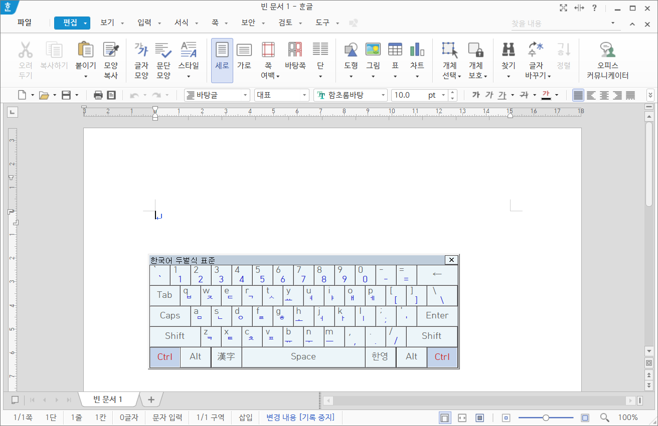 [도구]-[글자판]-[글자판 바꾸기]를 선택하거나 단축키 <Alt + F2>를 누릅니다.