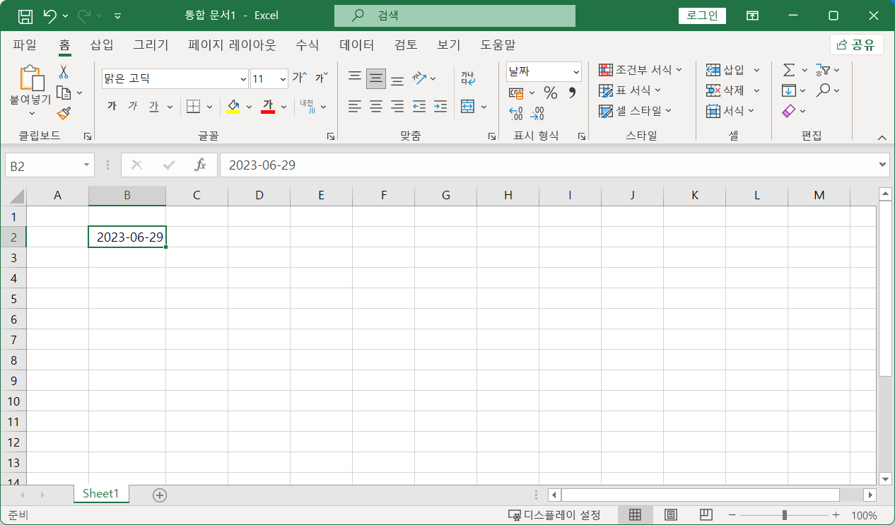 엑셀에 표시되어 있는 날짜 표시 형식이 바로 바뀝니다.