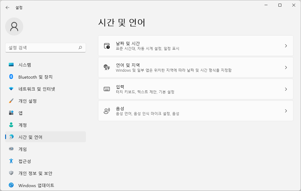 [설정]에서 [시간 및 언어]를 선택합니다.