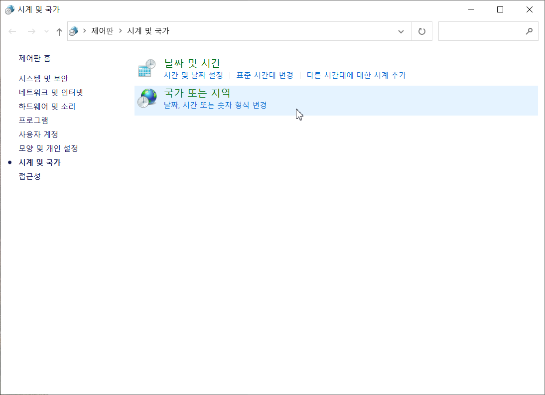 [언어 및 지역]을 선택합니다.
