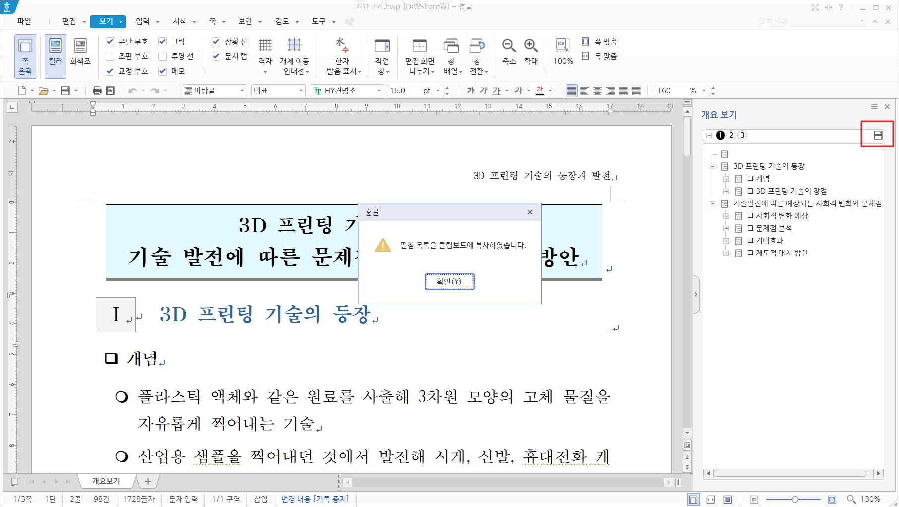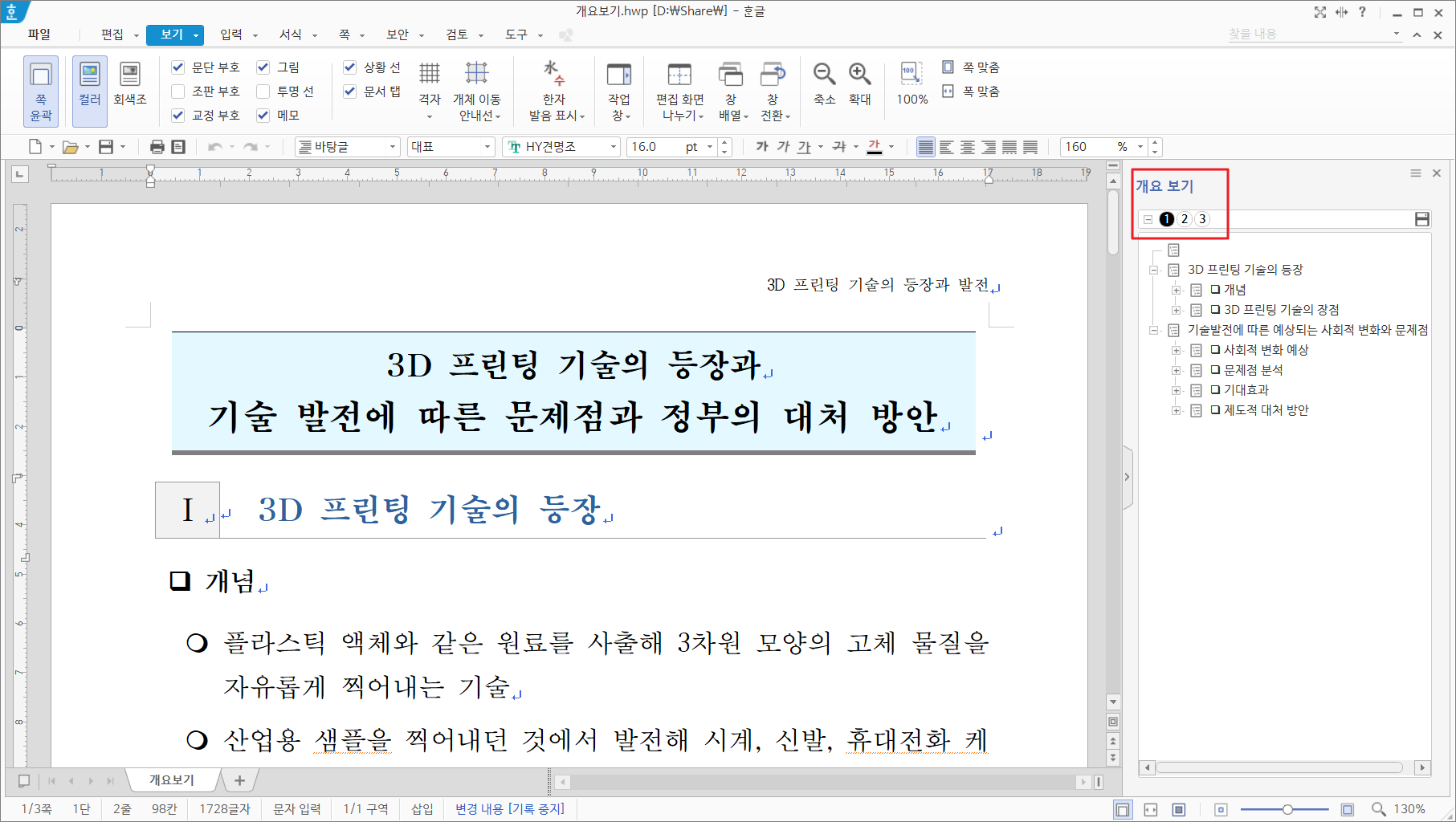 개요 보기로 문서 구조 파악하기 #한글문서작성실무