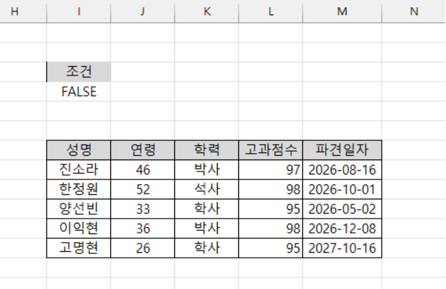 1. [K3] 셀에 조건을 입력한 후 [K4] 셀에 조건식을 작성하겠습니다.