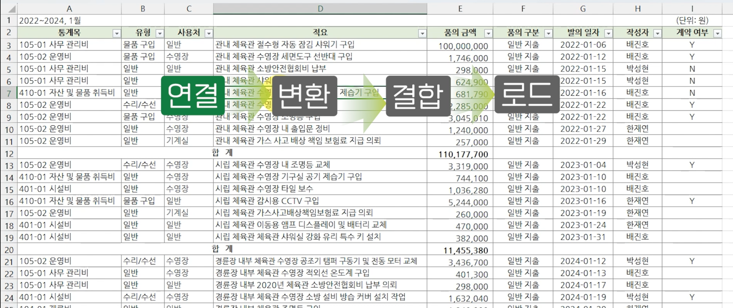 그럼 이 데이터를 파워 쿼리를 활용해서 분석이 가능하도록 데이터를 전처리하는 방법을 배워보겠습니다.