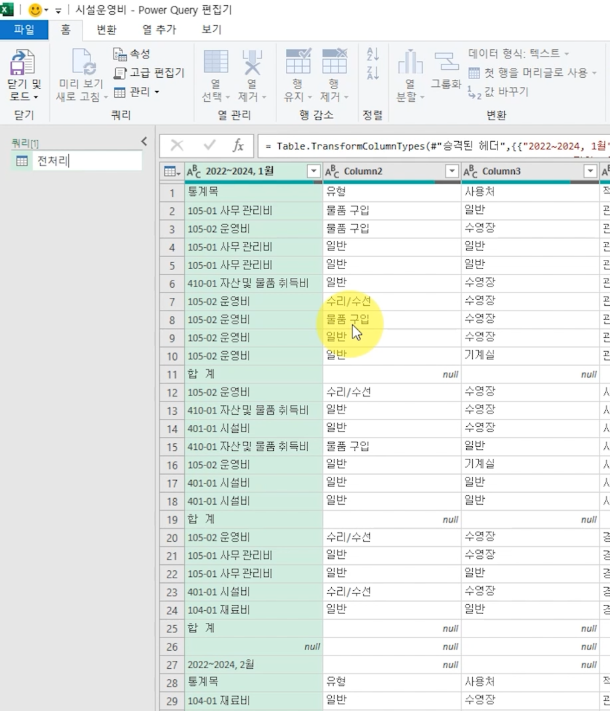 파워 쿼리를 사용하면 데이터 전처리가 아주 쉬워집니다.