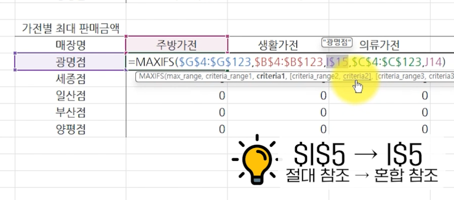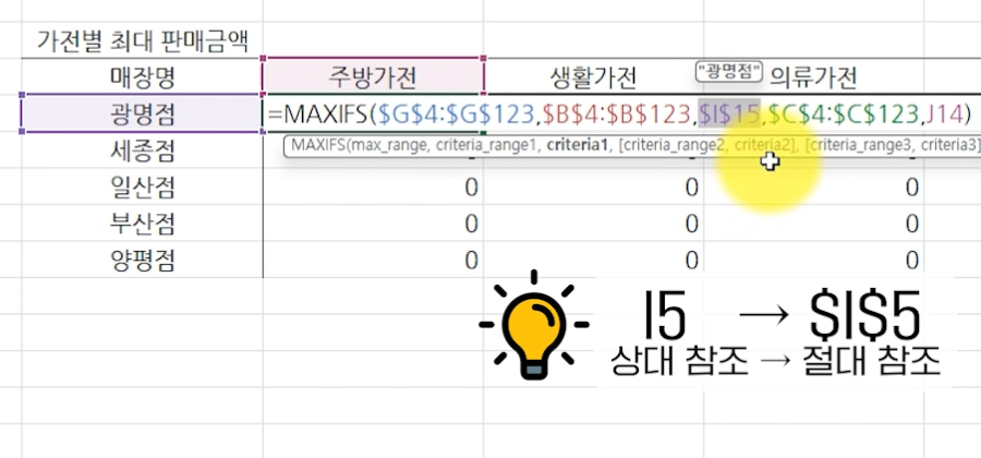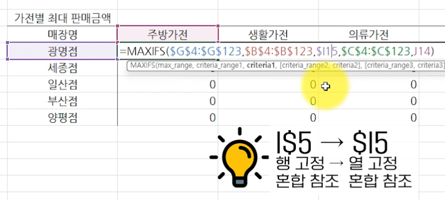 엑셀 함수] MAXIFS, MINIFS 함수와 혼합 참조 완벽 가이드 | 조건에 맞는 최대/최소값 구하기!