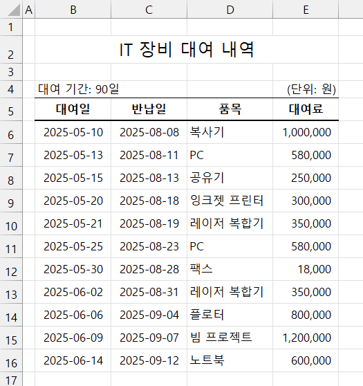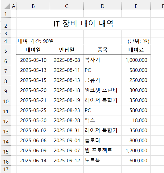 대여일은 날짜 형식으로 변경되고 반납일도 정상적으로 계산되었죠?