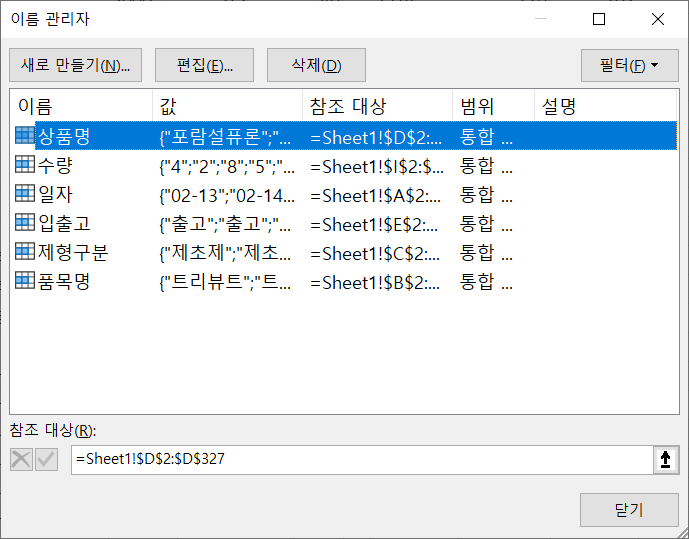 =IFERROR(INDEX(일자,LARGE(IF(K2&"출고"=품목명&입출고,MATCH(ROW(일자),ROW(일자),0),""),1)),"")