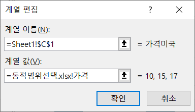 [계열 편집] 대화상자에서 '개열 이름', '계열 값'을 수정합니다.