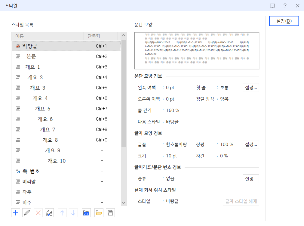 한글 파일을 열었는데, 기본 스타일들이 없는 경우 해결 방법
